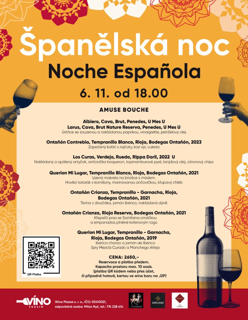 Celým večerem budou doprovázeny červená a bílá vína z oblasti Rioja, Rueda a Ribera del Duero, která budou doprovázena španělskými tapas od FoodMillBlog // Milana Juřici.